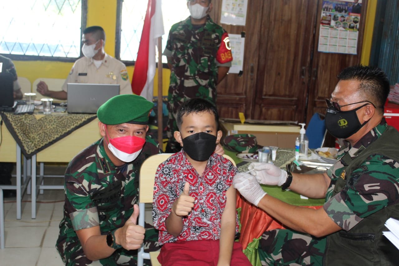 Kodim 0402/OKI Bantu Percepatan Vaksinasi Anak Usia 6-11 Tahun di OKI