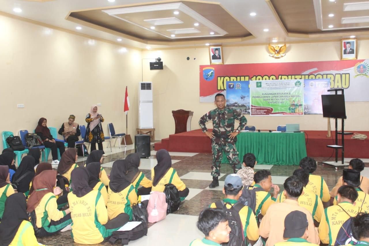 MATTANEWS.CO, KAPUAS HULU – Komando Distrik Militer 1206 Putussibau, menggelar kegiatan edukatif dan pembelajaran lapangan tentang Bela Negara kepada para siswa-siswi MTS Ma’Arif NU Kapuas Hulu.