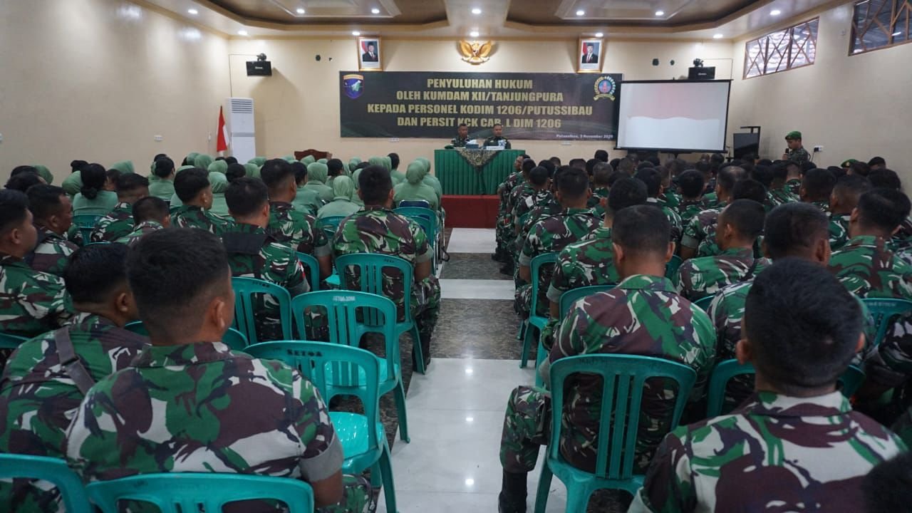 MATTANEWS.CO, KAPUAS HULU – Dengan mengangkat tema “Melalui penyuluhan hukum kita tingkatkan kesadaran hukum Prajurit Dalam Rangka Mendukung Tugas Pokok TNI AD”, tim penyuluh hukum dari Kumdam XII/Tanjungpura membagikan ilmunya kepada personil Kodim 1206 Putussibau, PNS dan Ibu – Ibu Persit KCK Cabang L.