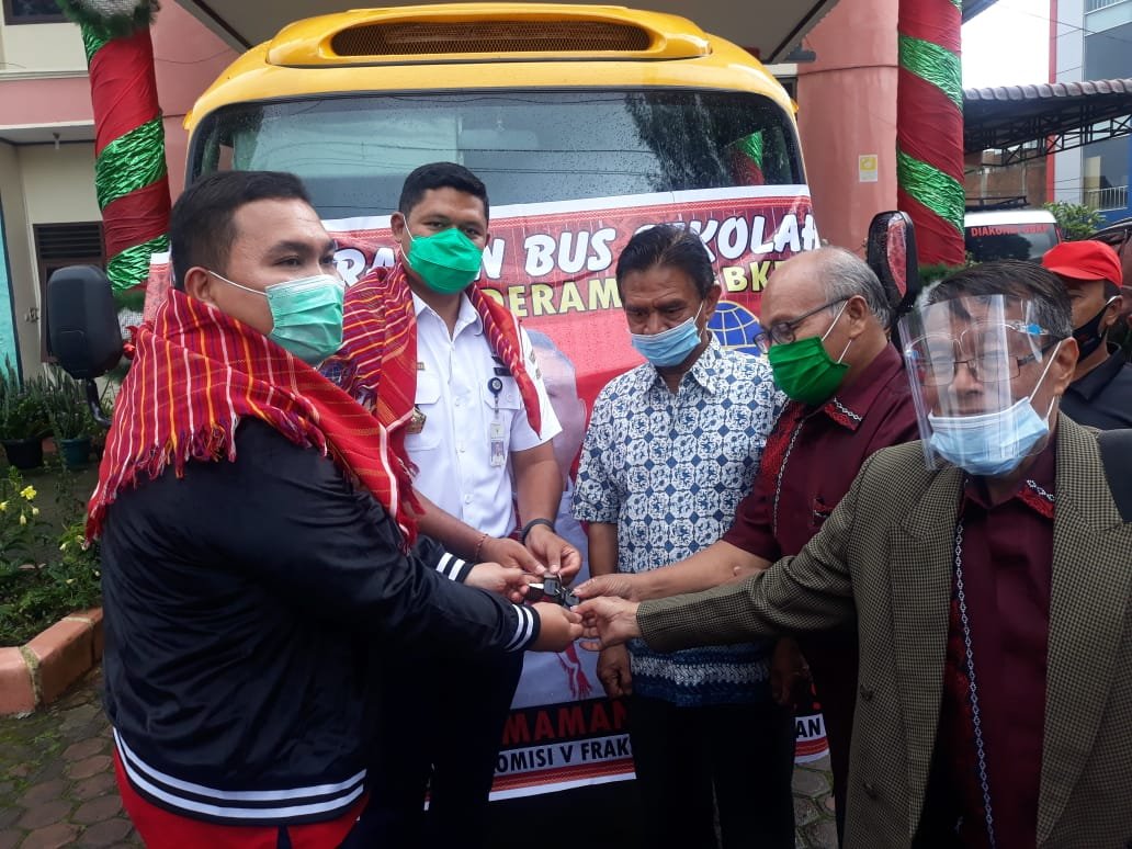 KARO, Mattanews.co – Menindaklanjuti gagasan Program Aspirasi DPR RI Komisi V bekerjasama dengan Kementerian Perhubungan, Anggota Komisi V DPR RI, Bob Andika Mamana Sitepu, menyerahkan satu unit mobil bus sekolah kepada Yayasan Moderamen Gereja Batak Karo Protestan (GBKP) di Kabupaten Karo, Rabu (16/12/2020).