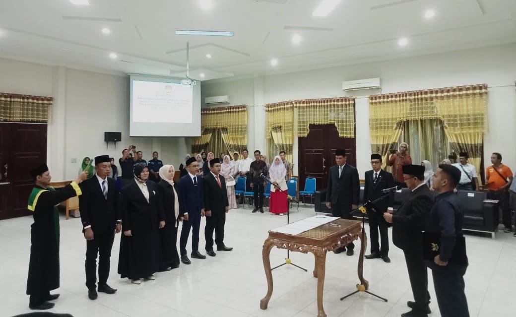MATTANEWS.CO, ACEH TAMIANG – Sebanyak 5 (lima) Komisioner Komisi Independen Pemilihan (KIP) Kabupaten Aceh Tamiang Priode 2023-2028, diambil sumpah jabatan dan dilantik langsung oleh Pj. Bupati Aceh Tamiang, Drs. Asra. Acara berlangsung di aula Setdakab kabupaten setempat, Jum’at (12/1/2024).
