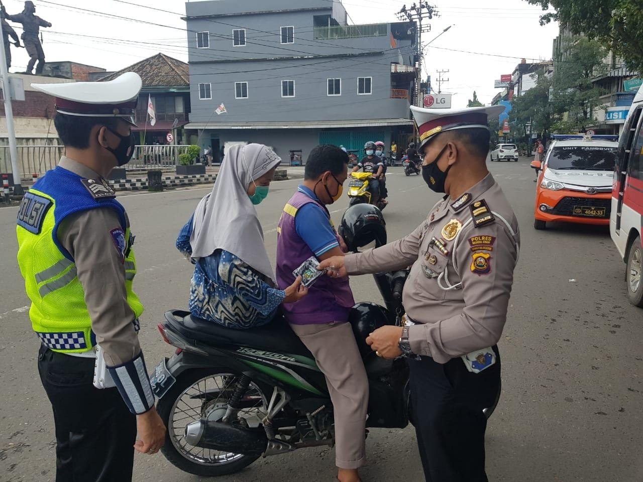 MATTANEWS.CO, MUARA ENIM – Sebagai bentuk kepedulian terhadap warga yang membutuhkan di masa pandemi Covid-19, Satuan Lalulintas di bawah komando KBO Satlantas Polres Muara Enim, Iptu Heri Jhon Fajri turun ke jalan membagikan masker gratis untuk masyarakat, Kamis (04/01/2021).