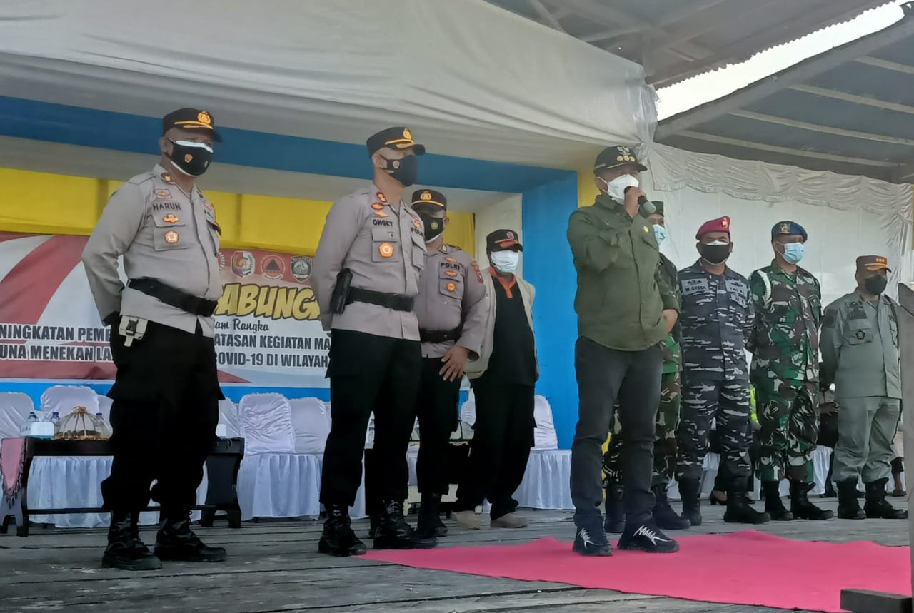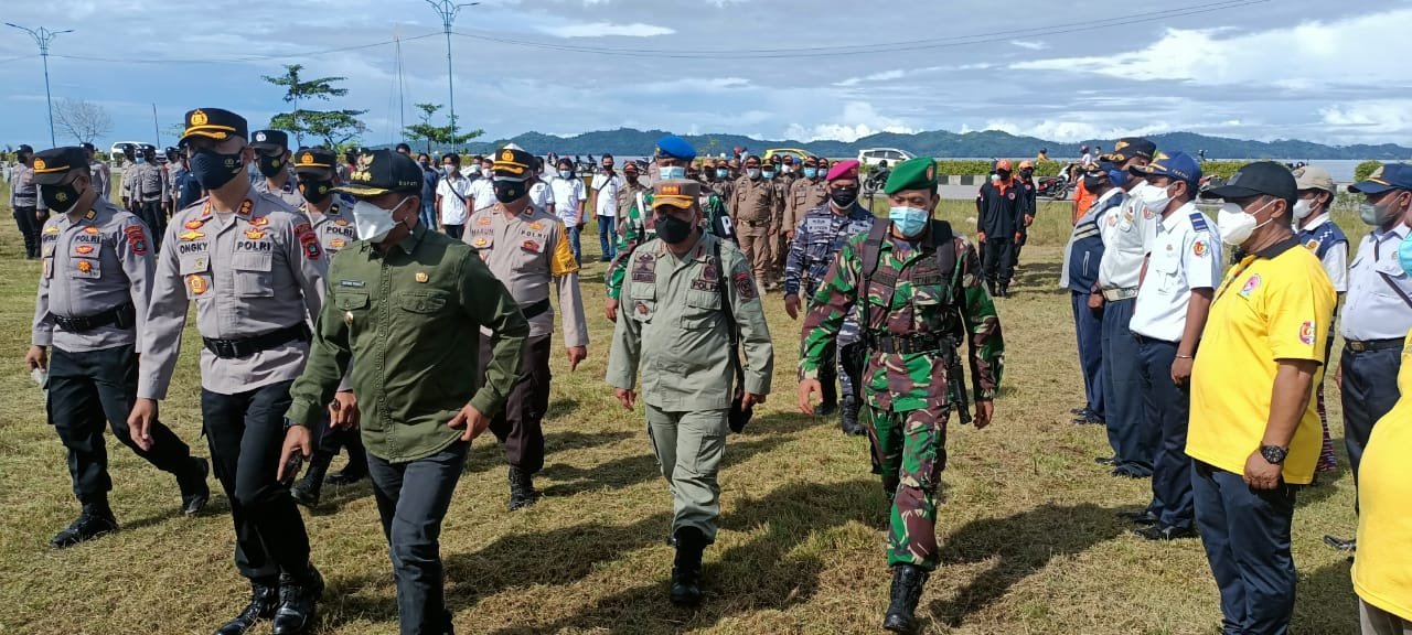 Bupati Fakfak Untung Tamsil S.sos. M.Si (tengah) saat menyampaikan arahan dalam Apel Gabungan PPKM