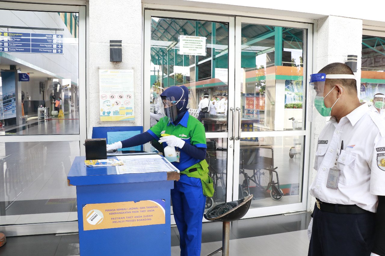“Protokol kesehatan yang wajib dilaksanakan pada pengguna jasa sesuai dengan arahan dari pemerintah dengan menunjukan hasil rapid tes/swab/pcr menggunakan masker, faceshield, mencuci tangan sebelum masuk stasiun dan saat ini fasilitas cuci tangan ditambah diarea yang mudah dijangkau, serta penyediaan handsanitaizer. Selain itu, untuk penerapan jaga jarak fisik dengan KAI memasang petunjuk jaga jarak di tempat – tempat yang memungkinkan terjadi antrian, seperti di depan loket, gate masuk ataupun boarding.