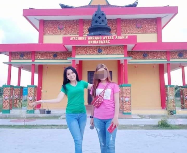 Postingan di Facebook korban terakhir, yaitu foto kenangan bersama adiknya di depan gedung Vihara Satya Dharma Sriwijaya Jakabaring Palembang.