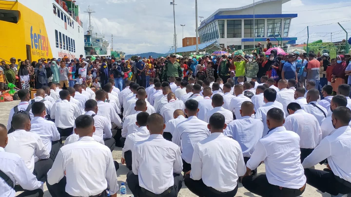 MATTANEWS.CO, FAKFAK – Suasana haru terlihat saat para orang tua dan keluarga mengantar keberangkatan peserta Calon Tamtama (Cata) PK TNI AD TA 2022, di Pelabuhan Penumpang Fakfak, Papua Barat, Sabtu (02/04/2022).