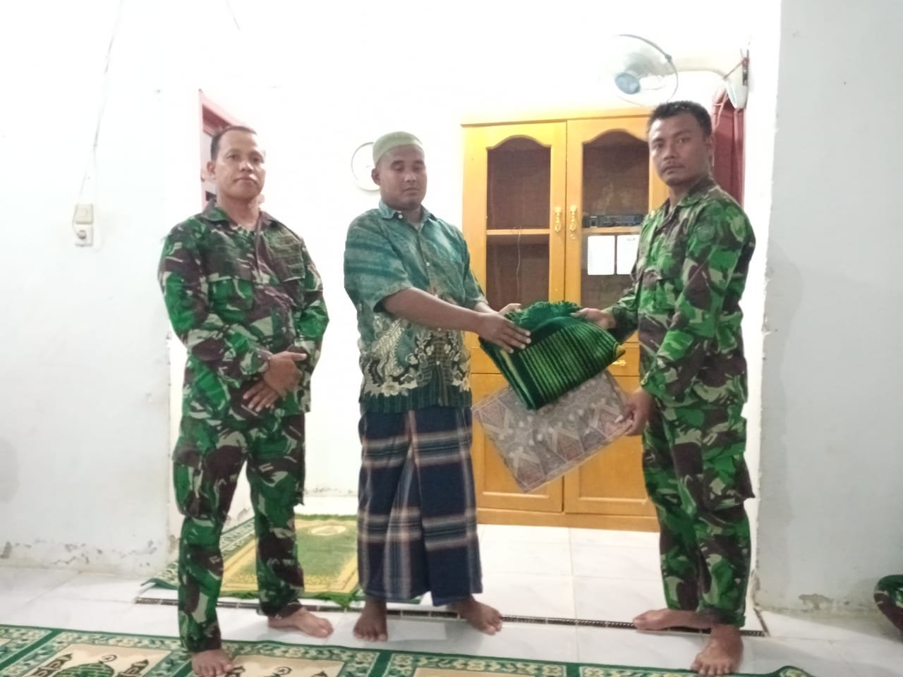 Penyerahan bantuan kepada pengurus masjid lokasi pelaksanaan TMMD ke 108 tersebut, berupa sajadah, jam dinding dan alat pencuci tangan dan sabun untuk mencegah penyebaran virus corona.