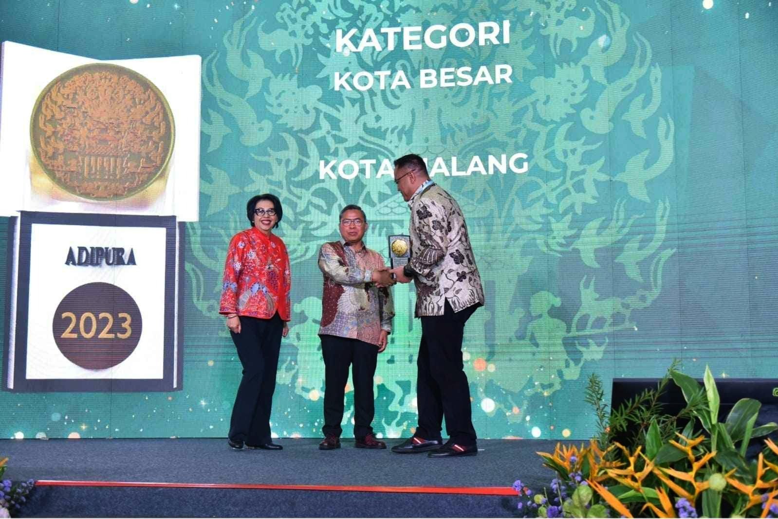 MATTANEWS.CO, KOTA MALANG – Pemerintah Kota Malang melalui Dinas Lingkungan Hidup (DLH) Kota Malang Raih Penghargaan ADIPURA tahun 2023 dalam kategori kota besar, Selasa (5/3/2024). Dalam penganugerahan bergengsi tersebut diserahkan secara langsung Wakil Menteri Lingkungan Hidup, Alue Dohong didampingi Direktur Jenderal Pengelolaan Sampah Limbah Berbahaya dan Beracun (PSLB3), Rosa Vivien Ratnawati kepada Kepala Dinas Lingkungan Hidup Kota Malang, Noer Rahman Wijaya, ST.MM, di Auditorium Dr Soedjarwo, Gedung Manggala Wanabakti, Kementerian Lingkungan Hidup, Jalan Gatot Subroto, Jakarta Pusat, Jum’at (8/3/2024).