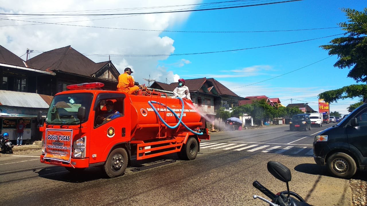 PAGARALAM, Mattanews.co – Pemerintah kota Pagaralam di dukung oleh Polres Pagaralam melakukan penyemprotan ribuan liter disinfektan secara massal, Selasa (31/03/2020)