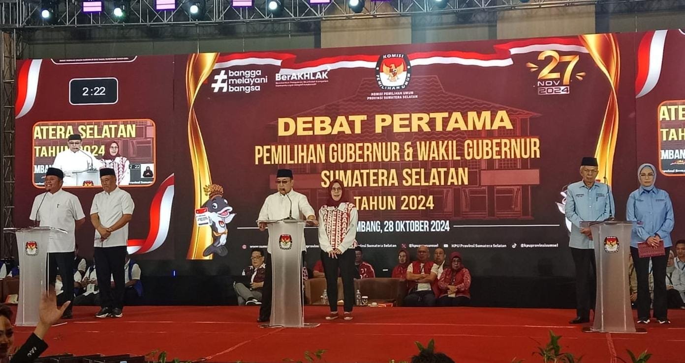 MATTANEWS.CO, PALEMBANG – Komisi Pemilihan Umum (KPU) Sumsel, gelar debat pertama pemilihan Calon Gubernur dan Wakil Gubernur Sumsel 2024, yang dilaksanakan di Ball Room Novotel kota Palembang, Senin (28/10/2024).