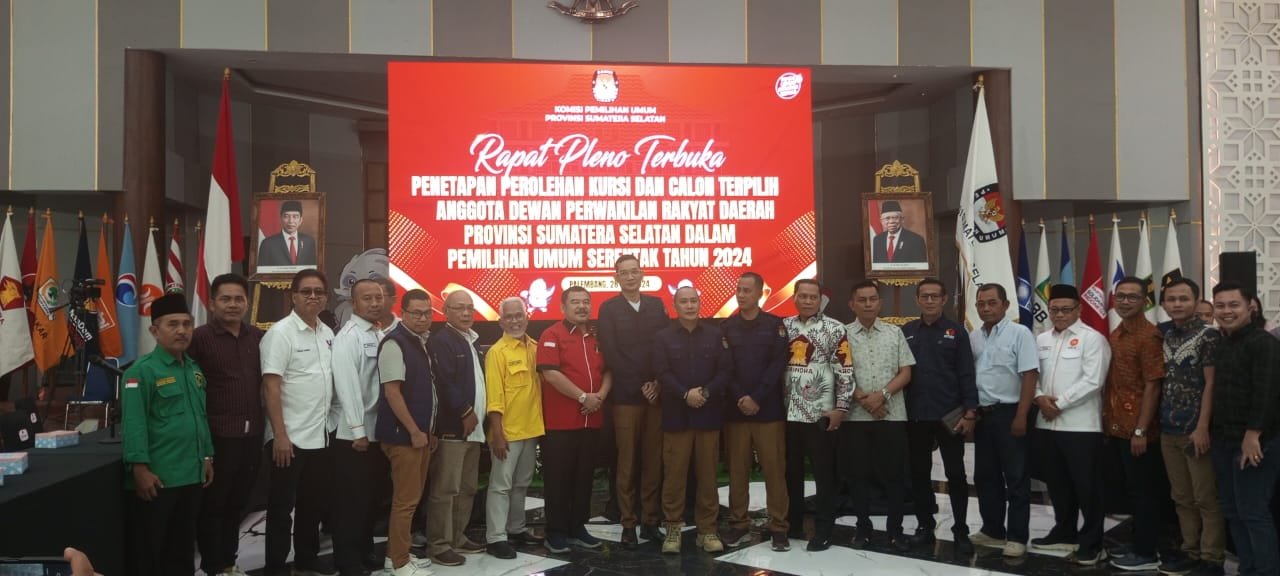 Ketua KPU Provinsi Sumsel, Andika Pranata Jaya memimpin langsung rapat pleno perolehan kursi ditiap dapil dan jumlah kursi ditiap partai. Partai Golkar 12 kursi, partai Gerindra 11 kursi, Partai Nasdem 10 kursi, PDIP 9 kursi, partai Demokrat 8 kursi, partai PKS dan PKB sama-sama 7 kursi. PAN 6 kursi, PPP 2 kursi, partai Hanura, PKN dan partai Perindo memiliki satu kursi. Sedangkan untuk partai buruh, partai Gelora, partai Garuda, PBB, PSI dan partai Ummat tidak memiliki kursi di DPRD Sumsel. Total kursi di DPRD Sumsel sendiri sebanyak 75 kursi dewan.