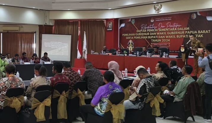 MATTANEWS.CO,FAKFAK – Komisi Pemilihan Umum (KPU) Kabupaten Fakfak menetapkan Daftar Pemilih Sementara (DPS) untuk pemilihan kepala daerah (Pilkada) Pemilihan Gubernur dan Wakil Gubernur Papua Barat dan Pemilihan Bupati dan Wakil Bupati Kabupaten Fakfak tahun 2024, Senin (12/8/2024).