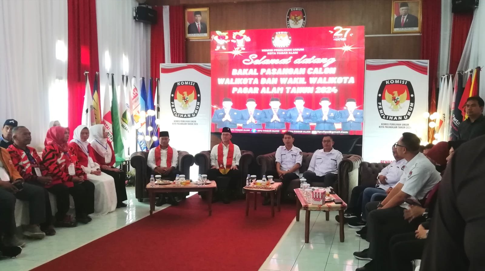 MATTANEWS.CO PAGAR ALAM – KPUD Kota Pagar Alam selama 3 hari dari tanggal 27-29 Agustus 2024 dengan resmi telah menerima pendaftaran 3 pasang kontestan Cakada Kota Pagar Alam periode 2024 – 2029.