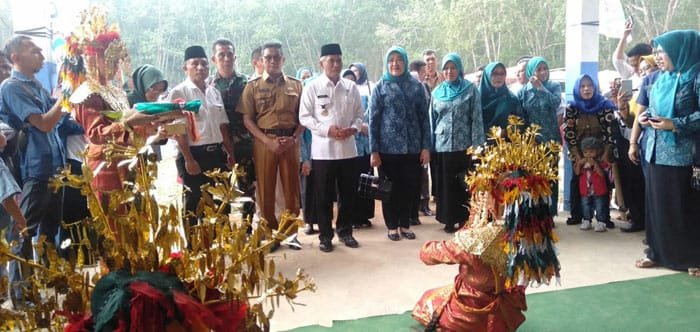 Kunjungan kerja Bupati OKI bersama rombongan dalam rangka meresmikan gedung olahraga multifungsi Desa Pangkalan Lampam dan sekaligus melakukan kegiatan monitoring serta evaluasi TP PKK OKI tahun 2019.