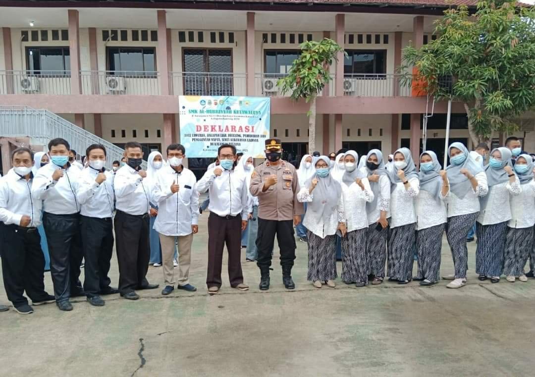 MATTANEWS.CO, KARAWANG – Kapolsek Rengasdengklok Polres Karawang, Kompol Agus Setiawan hadiri deklarasi anti tawuran, balapan liar, bullying, peredaran dan penggunaan Napza serta kekerasan lainnya di SMK Al Huriyah Kutawaluya, Kecamatan Kutawaluya, Senin (18/10/2021).
