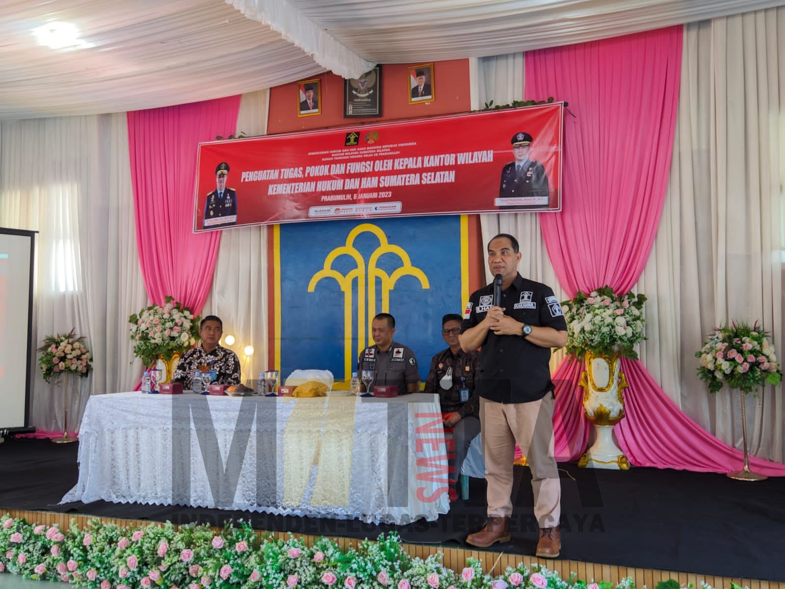 MATTANEWS.CO, PRABUMULIH – Kepala Kantor Wilayah (Kakanwil) Kemenkumham Sumsel, Ilham Djaya melaksanakan kunjungan kerja di Rutan Prabumulih sekaligus memberikan penguatan tugas pokok dan fungsi kepada jajaran, Jum’at (6/01/2023).