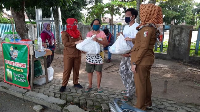 Guna meringankan beban masyarakat yang terdampak akibat Pandemi virus corona disease (Covid- 19), lagi-lagi Bupati Tulang Bawang, Winarti memperhatikan warganya dengan turun langsung ke lapangan. Ratusan paket sembako dibagikan kepada buruh serabutan, pedagang, ojek dan lainnya, Rabu (22/04/2020).