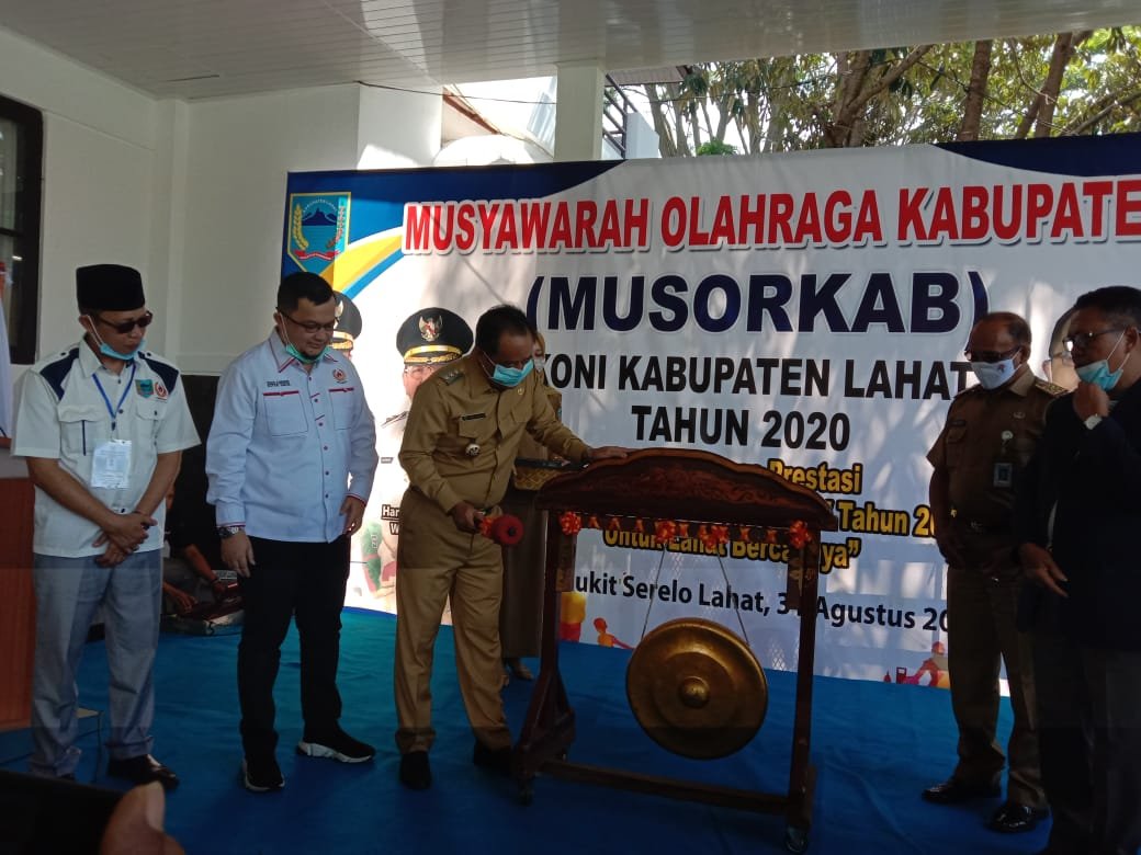LAHAT, Mattanews.co – Musyawarah Olahraga Kabupaten (Musorkab) tahun 2020 di Kabupaten Lahat resmi dibuka pada Senin (31/8) di Hotel Bukit Serelo Lahat. Kegiatan tersebut dihadiri Ketua KONI Provinsi Sumatera Selatan Hendri Zainuddin, Kadispora Lahat, Plt Ketua KONI Lahat, dan para Pengcap Cabor sekaligus peserta dan Peninjau Mosorkab KONI Kabupaten Lahat.