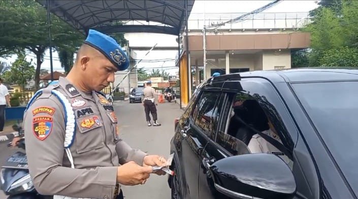 Penertiban kendaraan dilakukan dari pukul 07.00 WIB hingga pukul 08.00 WIB dipimpin langsung Kasi Provost Polrestabes Palembang, Kompol Akagani.