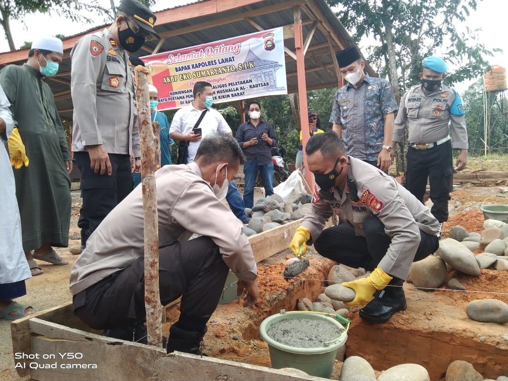 Kapolsek Kikim barat Iptu Edisyam Harahap menyampaikan,ucapan terima kasih kepada Kapolres Lahat AKBP Eko Sumaryanto yang telah hadir di Mapolsek Kikim Barat dalam rangka peletakan batu pertama pembangunan Mushalla Al – Kautsar.