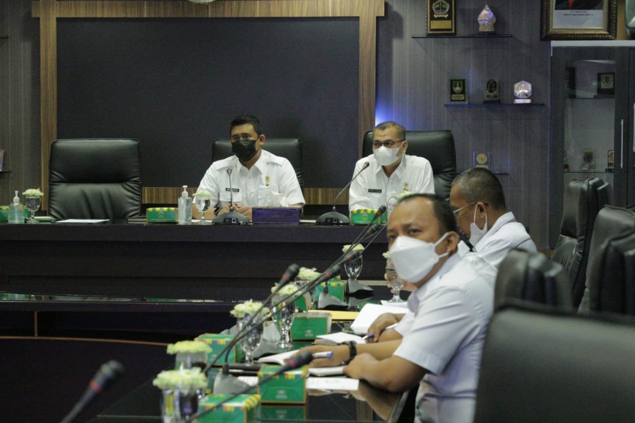 Untuk menangani banjir tersebut, Wako Medan memimpin rapat di Balai Kota, Rabu (10/3/2021).
