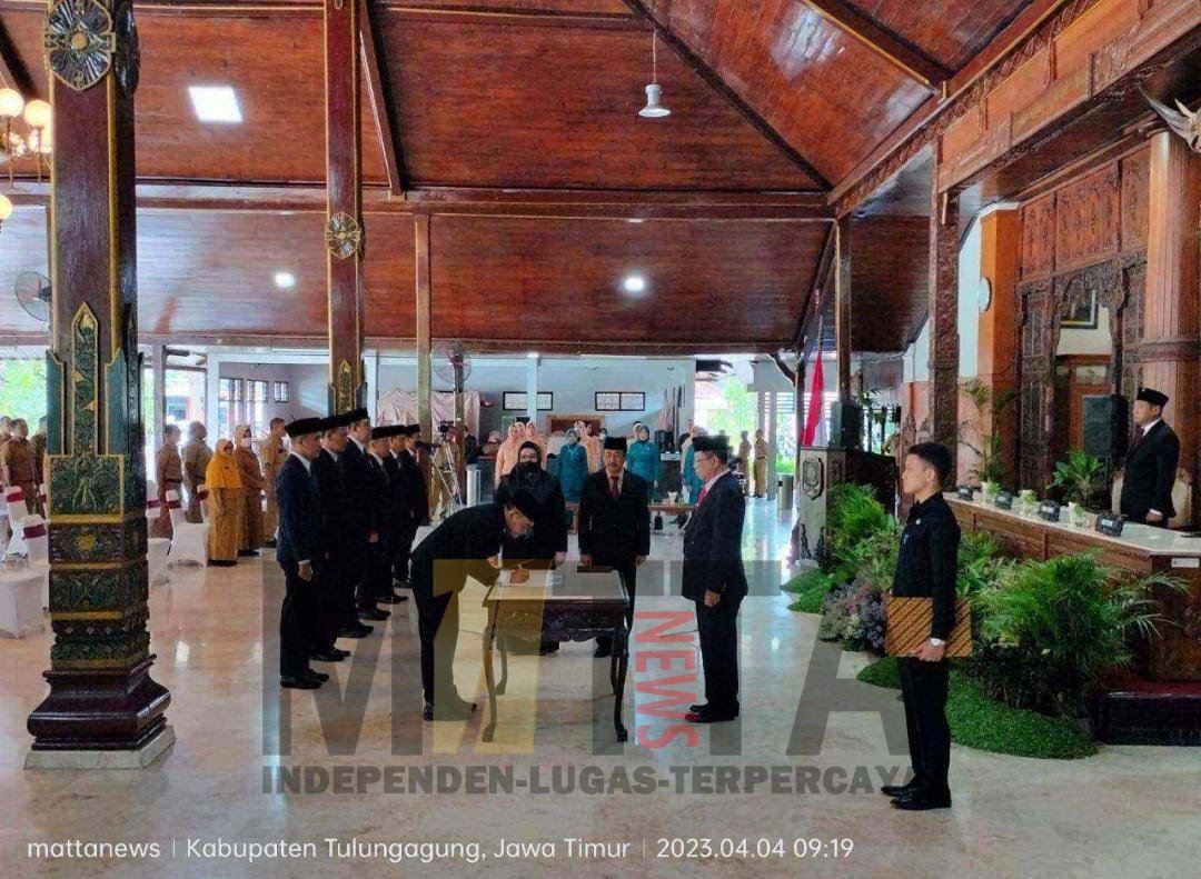 Pernyataan ini dikatakan Maryoto dalam mengawali kata sambutan dalam rangka Pelantikan dan Pengambilan Sumpah Janji Jabatan Pimpinan Tinggi Pratama di lingkungan Pemerintah kabupaten Tulungagung di Pendapa Kongas Arum Kusumaning Bongso setempat, Selasa (4/4/2023).