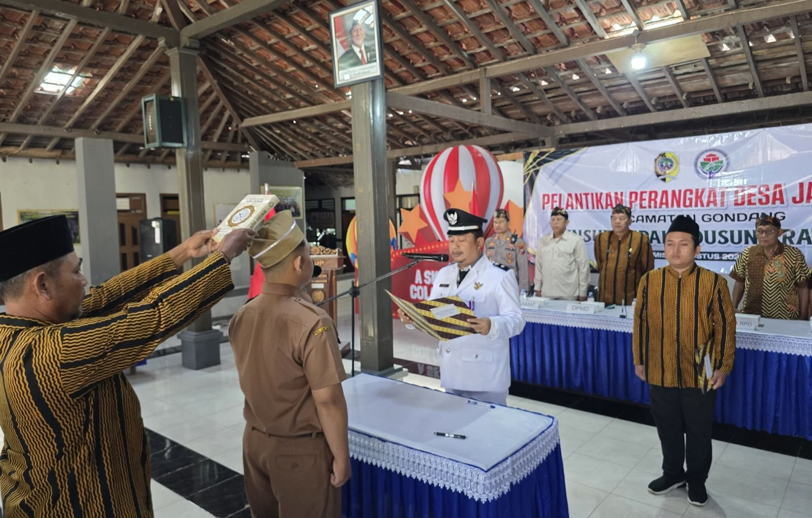 MATTANEWS.CO,TULUNGAGUNG – Kepala Desa Jarakan, Kecamatan Gondang, Kabupaten Tulungagung, Suad Bagiyo, S.H., secara resmi melantik Ardian Sukma Jaya, A.Md. Bns., sebagai Kepala Dusun Krajan. Prosesi pelantikan berlangsung khidmat di Balai Desa Jarakan pada Kamis (7/8/2025), dan dihadiri oleh sejumlah pejabat penting, termasuk Plt Kepala Dinas Pemberdayaan Masyarakat dan Desa (PMD) Kabupaten Tulungagung, Hari Prastijo, serta jajaran Forkopimcam Gondang.