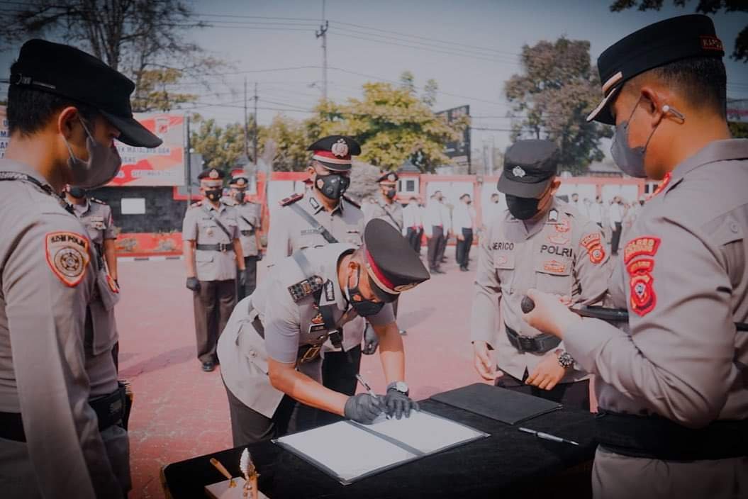 MATTANEWS.CO, KARAWANG – Kapolres Karawang, AKBP Aldi Subartono memimpin serah terima jabatan (sertijab) Kabag Ren dan Kapolsek jajaran, di halaman apel Mapolres, Jumat (16/9/2022).