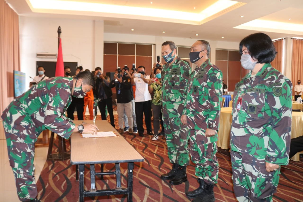 PALEMBANG, Mattanews.co – Pangkalan TNI AU Sri Mulyono Herlambang (SMH) Palembang, melakukan pencanangan pembangunan zona integritas menuju wilayah bebas korupsi (WBK) dan wilayah birokrasi bersih melayani (WBBM), di gedung Bima Sakti Lanud Sri Mulyono Herlambang, Rabu (24/6/2020).