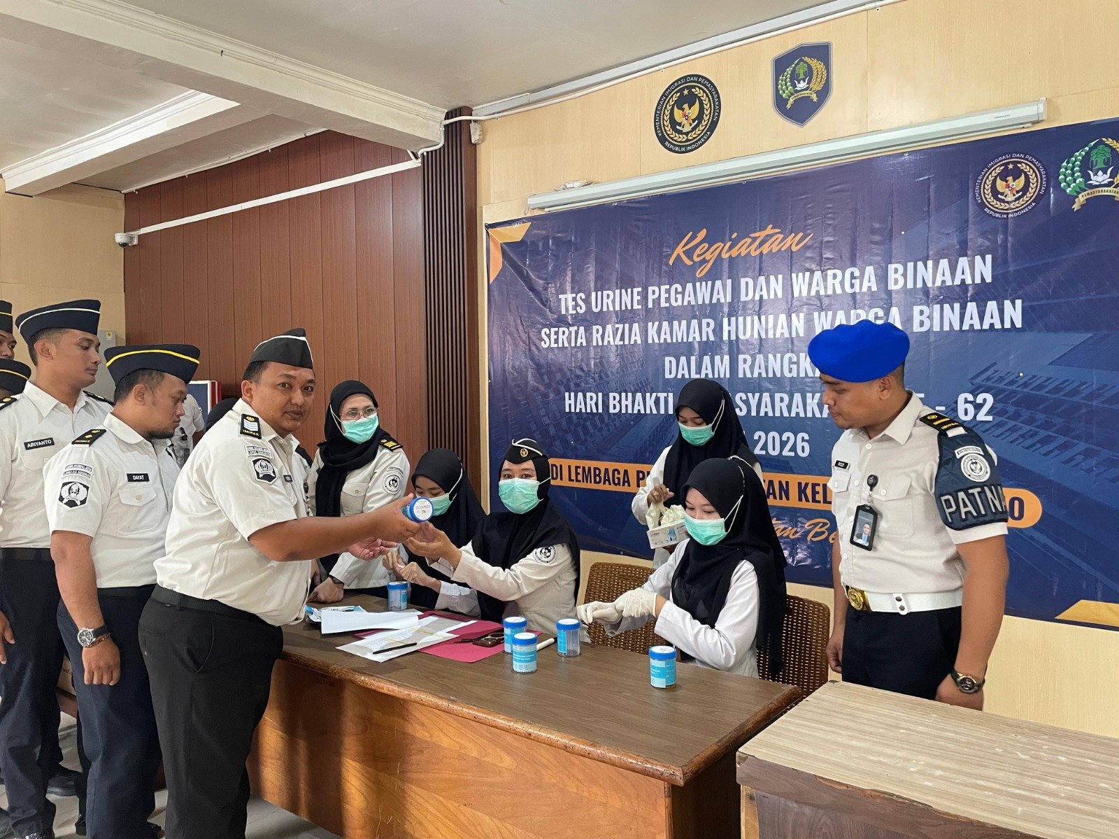 Seluruh petugas dan warga binaan mengikuti tes urin secara menyeluruh dengan pengawasan ketat dari petugas terkait. Kegiatan ini juga turut dihadiri oleh aparat kepolisian guna memastikan proses pelaksanaan berjalan aman, tertib, dan sesuai prosedur yang berlaku.