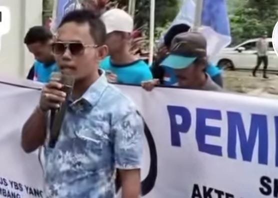 Dalam orasinya Dian HS selaku ketua lembaga PST kritisi terkait pembangunan 15 paket pekerjaan Gapura oleh Perkimtan Muara Enim.