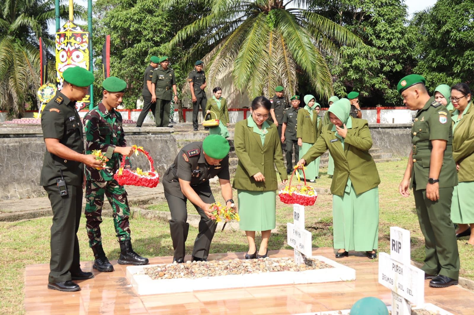 Dandim 1206/Putussibau, Letkol Arm Andreas Prabowo Putro S.I.Pem., M.I.P., M.Han., memimpin upacara ziarah yang dihadiri oleh seluruh Perwira Staf, Anggota Kodim 1206/Psb, Ketua Persit Cabang L Kodim 1206/Psb, dan Anggota Batalyon 644/Walet Sakti.