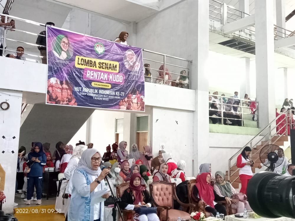 “Saya selaku Dewan Penasehat DWP Batanghari menyambut baik atas terselenggaranya kegiatan Lomba Senam Rantak Kudo yang dilaksanakan oleh Dharma Wanita Persatuan Kabupaten Batang Hari beserta pengurus,” kata Nuraini, Rabu (31/08/2022).