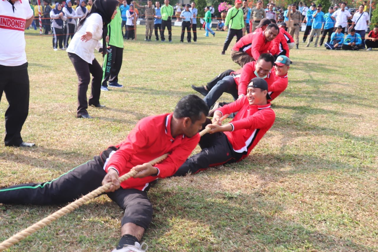 Mewakili Bupati Muba H Dodi Reza Alex Noerdin, Sekretaris Daerah Kabupaten Muba Drs H Apriyadi MSi membuka langsung perlombaan tarik tambang, disaksikan perwakilan Forkopimnda dan Perangkat Daerah di Lingkungan Pemkab Muba.