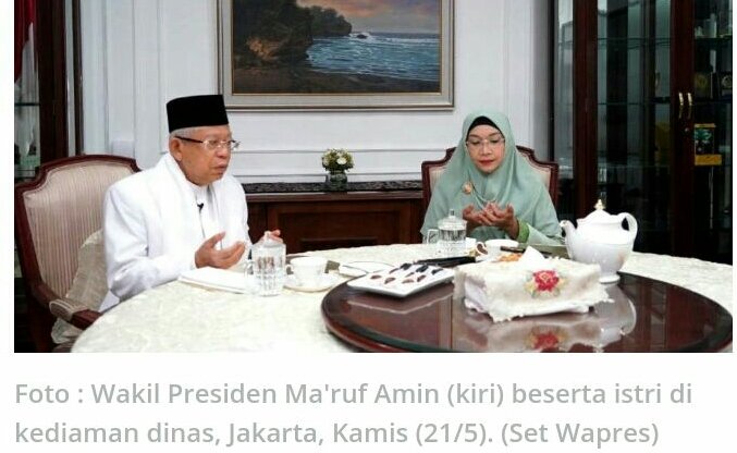 “Ada dua dosa kesalahan yang kita mintakan untuk diampuni. Yaitu kesalahan kita kepada Allah yang kita lakukan setiap malam di bulan Ramadan, tetapi ada kesalahan yang harus kita mintakan langsung kepada sesama masyarakat, kepada sesama manusia, yaitu untuk meminta maaf. Itulah yang kemudian biasanya pada saat Idulfitri kita melakukan silaturahim untuk memohon maaf kepada sesama, kepada orang tua, kepada tetangga, kepada saudara-saudara, supaya kita terbebas dari kesalahan di antara kita,” ungkap Wakil Presiden (Wapres) K.H. Ma’ruf Amin ketika menyampaikan tausiah Ramadan di kediaman dinas Wapres, Jalan Diponegoro Nomor 2, Jakarta Pusat, Rabu (20/5).