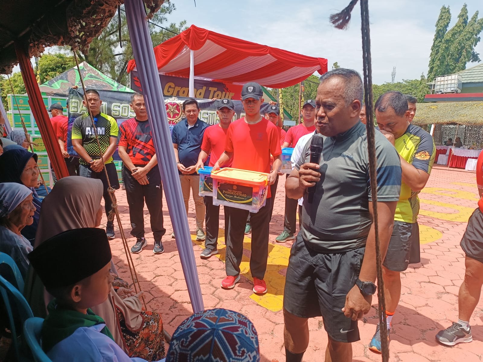 “Disini Pangkostrad melaksanakan kegiatan baksos dengan memberikan tali asih sebanyak 200 paket sembako terhadap anak yatim piatu, kaum dhuafa seta guru ngaji,” ucap Sigit.