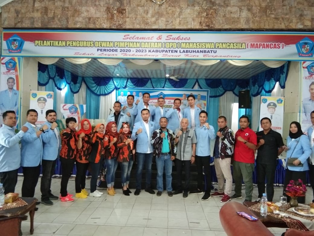 LABUHANBATU, Mattanews.co – Pengurus Dewan Pimpinan Daerah (DPD) Mahasiswa Pancasila (MAPANCAS ) Labuhanbatu periode 2020-2023 dilantik, di Gedung Nasional Jalan Ahmad Yani Rantauprapat, kemarin.