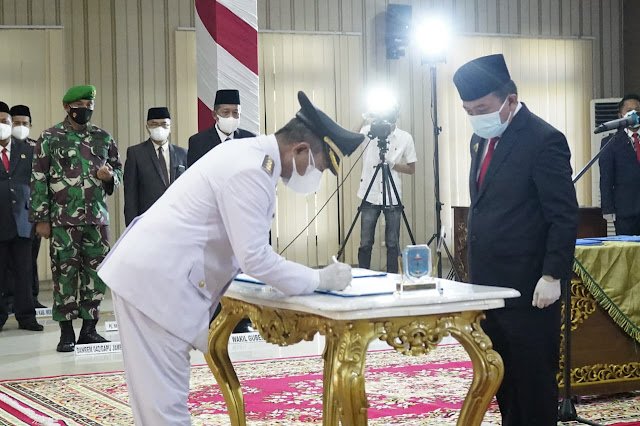 Kini, Mashuri dilantik menjadi Bupati Merangin Oleh Gubenur Jambi Al Haris, di ruang pola I Kantor Bupati Merangin Sabtu (28/8/2021) siang.