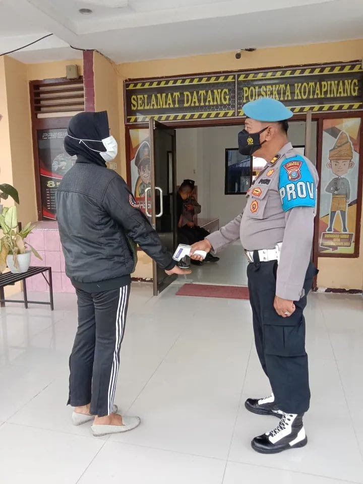 MATTANEWS.CO, LABUHANBATU SELATAN – Terus melakukan pencegahan dini terhadap penyebaran virus Covid 19, di tengah tengah masyarakat, Polsekta Kota Pinang melalui Piket Jaga melakukan pengecekan suhu badan kepada masyarakat yang hendak berkunjung ke Mapolsek Kota Pinang.