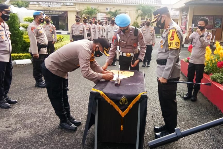 Kapolres Prabumulih, AKBP Siswandi SH,. SIk,.MH usai penandatanganan fakta integritas keseluruh personil baik Bintara hingga Perwira, menjelaskan pihaknya tidak ingin main-main dalam urusan narkoba.