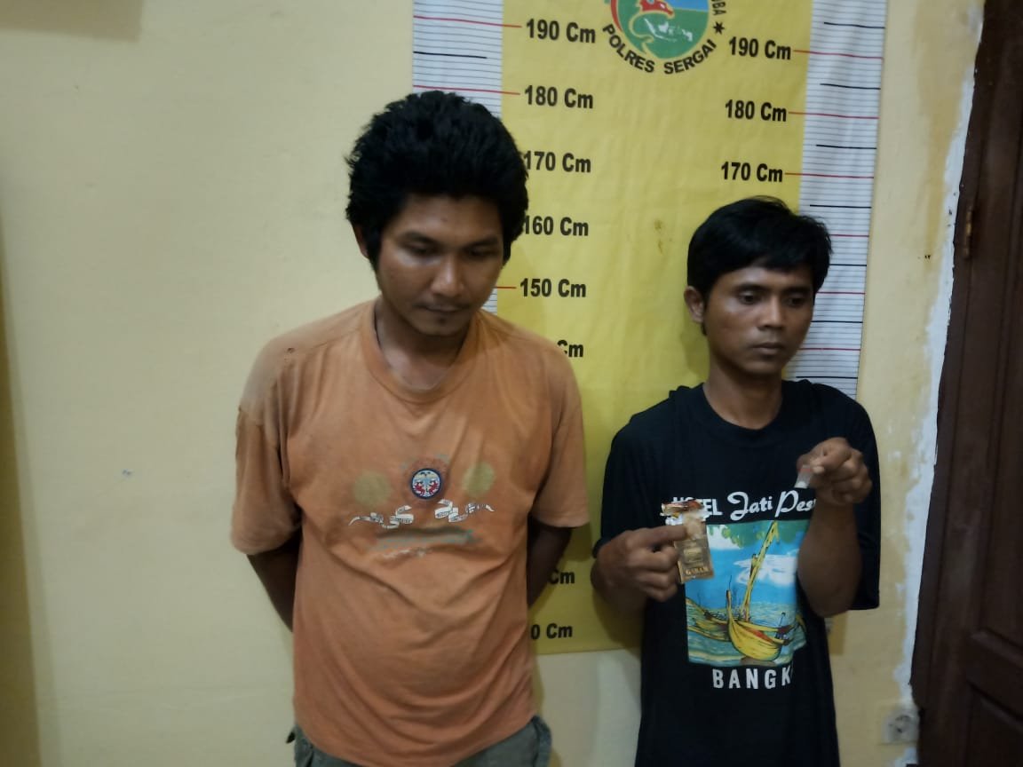 Keduanya ditangkap oleh Tim Satresnarkoba Polres Sergai saat berada di pinggir jalan di Dusun XI, Desa Bingkat, Kecamatan Pegajahan, Sergai, Kamis (5/3/2020)