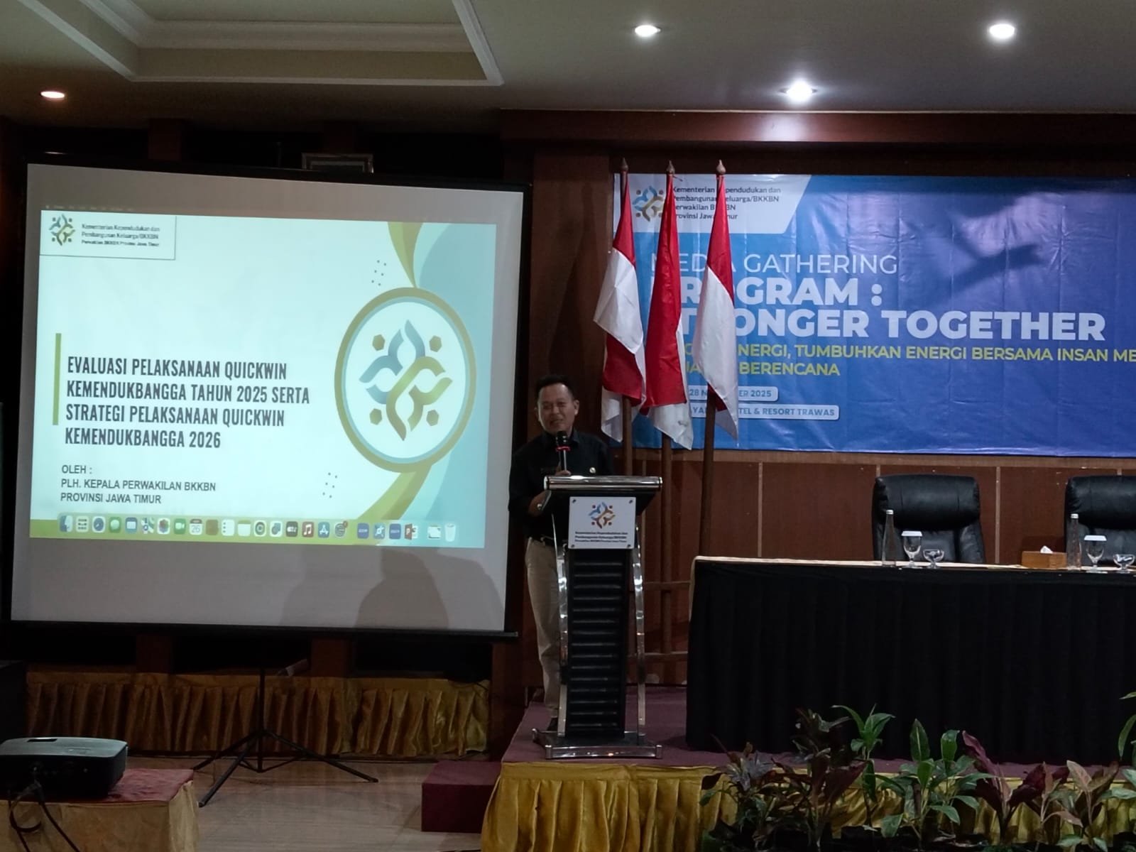 Beberapa agenda penting pada hari pertama dalam kegiatan ini meliputi arahan dan materi “Evaluasi Pelaksanaan Quick Win Kemendukbangga/BKKBN Tahun 2025, serta Strategi Pelaksanaan Quick Win Kemendukbangga/BKKBN Tahun 2026” yang disampaikan oleh Plh. Kepala Perwakilan BKKBN Jawa Timur.