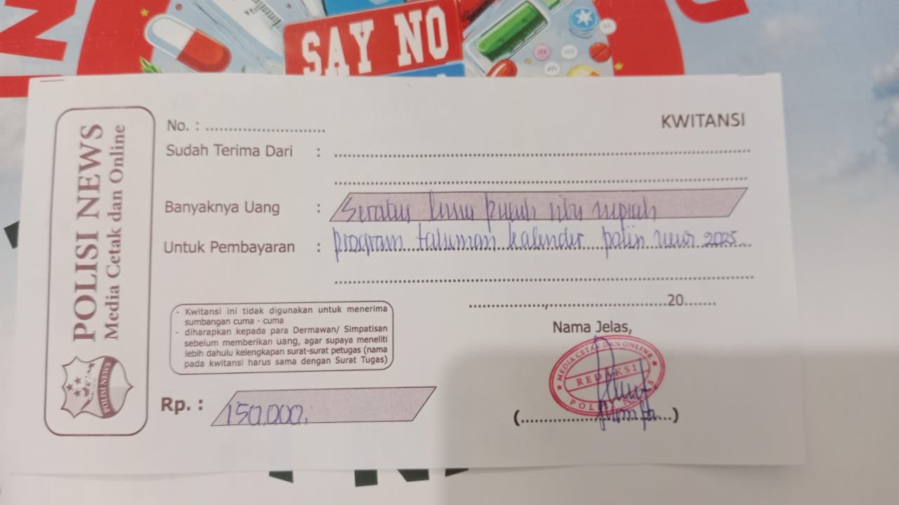 Diketahui ada satu kwintasi senilai Rp.150.000,_ telah mereka terima yang bertuliskan untuk pembayaran program tahunan kalender 2025.