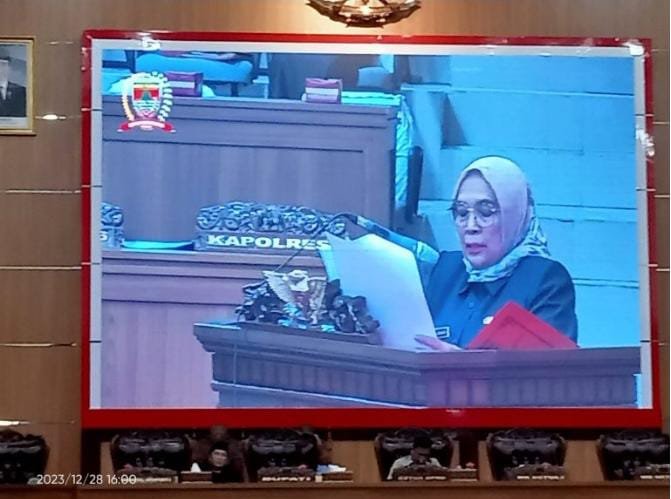 Rapat paripurna yang digelar diruang Rapat Paripurna DPRD Kabupaten Musi Rawas dihadiri Hj Suwarti, Wakil Bupati Kabupaten Musi Rawas (Mura), Provinsi Sumatera Selatan (Sumsel), Jumat (29/12/2023).