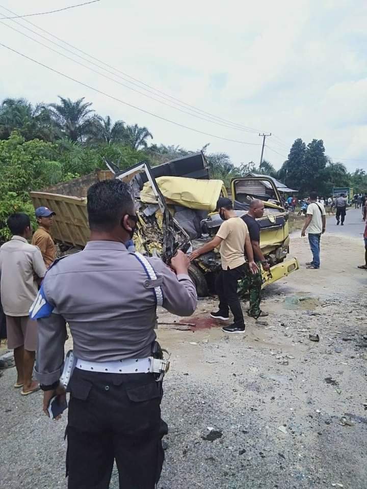 Informasi yang dihimpun, tabrakan mobil bus dengan nomor polisi K 1601 B dari arah Jawa Pati menuju Teluk Kuantan Pekanbaru Riau. Sedangkan lawannya, mobil Mitsubishi Canter dengan nomor polisi BH 8183 KU. Sopir mobil truk meninggal dunia di Tempat Kejadian Perkara (TKP).