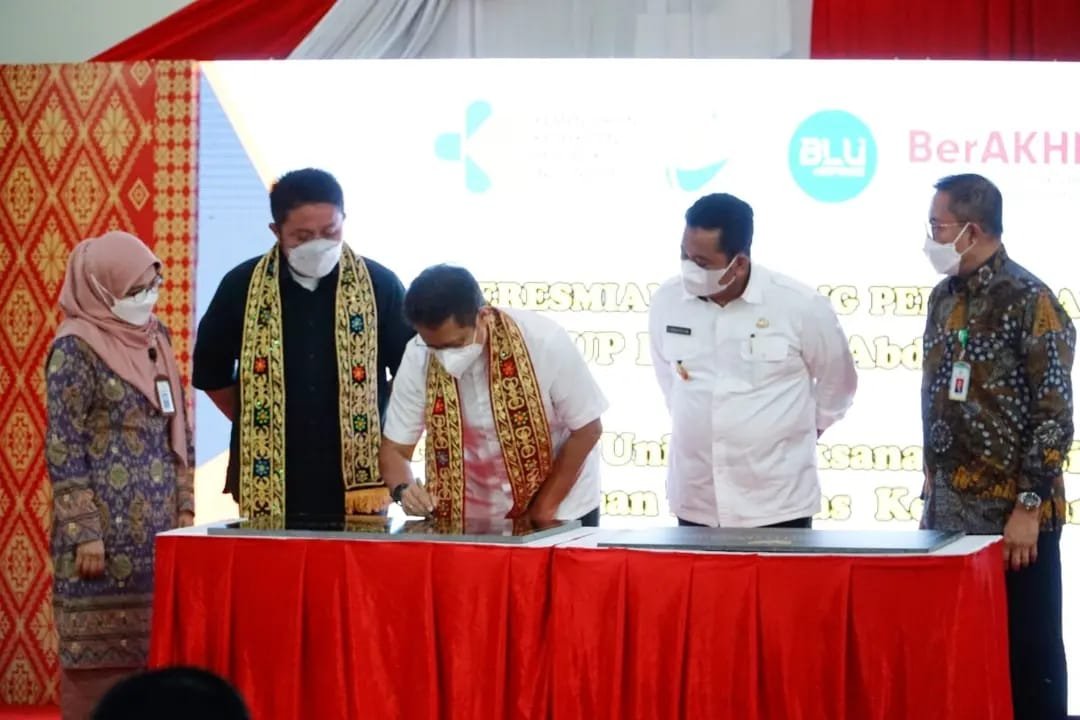 MATTANEWS.CO, BANYUASIN – Menteri Kesehatan RI, Budi Gunadi Sadikin bersama Gubernur H. Herman Deru meresmikan Gedung Pelayanan A RSUP Dr. Rivai Abdullah dan Peresmian Unit Pelaksanaan Fungsional Pengamanan Fasilitas Kesehatan (UPF PFK).