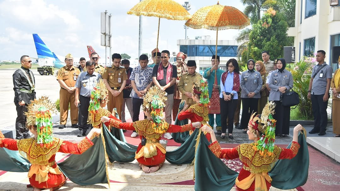 MATTANEWS.CO, JAMBI – Menteri Hukum Republik Indonesia, Supratman Andi Agtas, tiba di Provinsi Jambi dalam rangka kunjungan kerja pada Senin (27/4/2026). Kedatangan Menkum RI di Bandara Sultan Thaha Saifuddin disambut secara adat melalui Tarian Sekapur Sirih sebagai bentuk penghormatan khas masyarakat Jambi.
