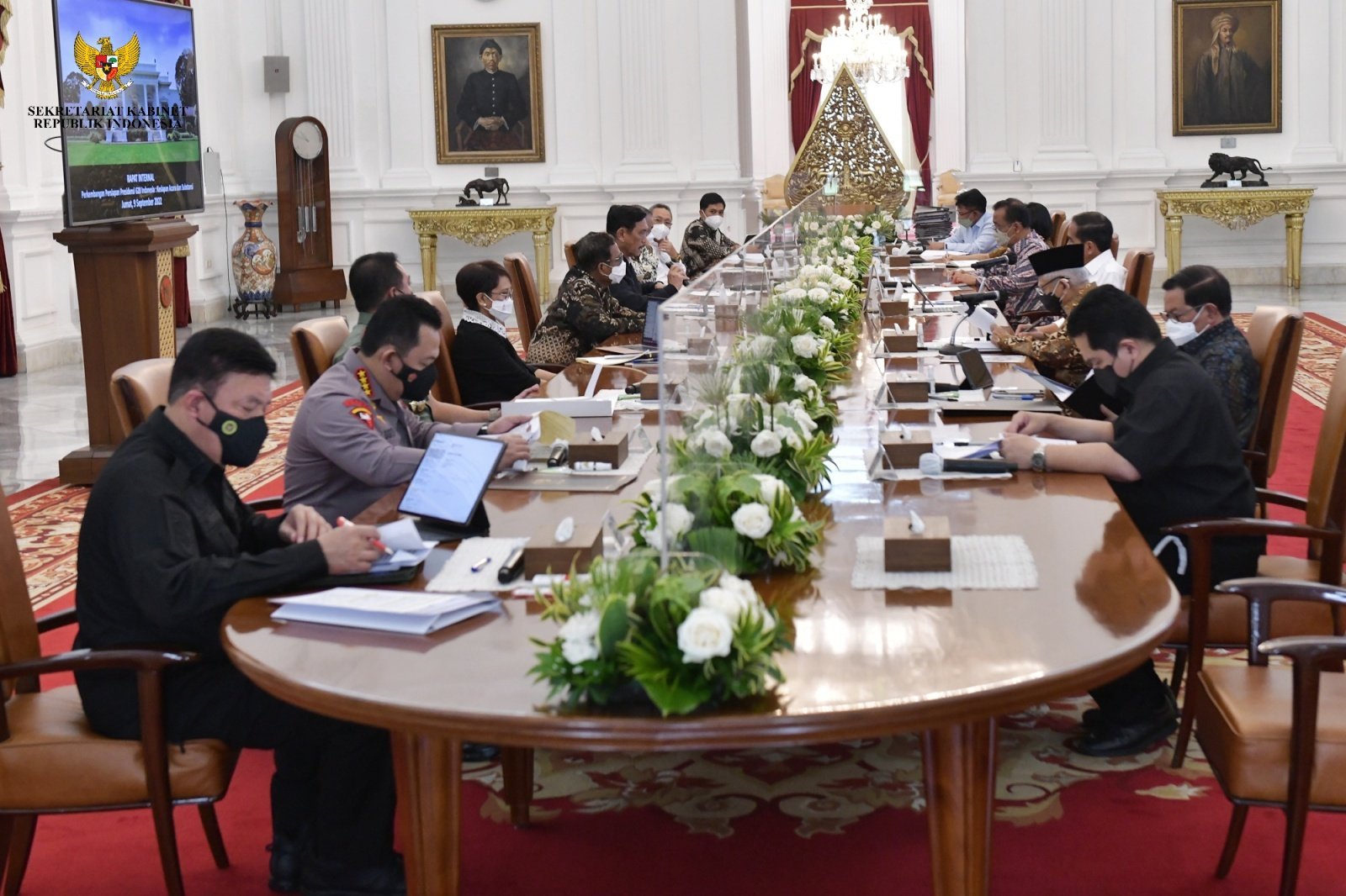 “Kita melaporkan kepada Bapak Presiden semua persiapannya. Dari Agustus sampai September ada enam pertemuan tingkat menteri, terus nanti Oktober-November masih ada delapan pertemuan tingkat menteri sampai menuju ke KTT G20. Tapi persiapannya alhamdulillah semuanya on the right track,” jelasnya.