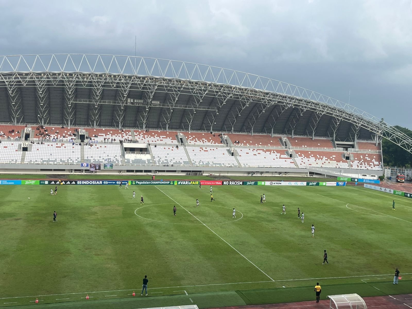 Tuan rumah sempat berada dalam tekanan setelah tertinggal lebih dulu melalui gol penalti Ilham Fatoni pada menit ke-23. Namun respons cepat ditunjukkan Sumsel United lewat gol Juninho Cabral menit ke-27. Situasi semakin sulit setelah Rachmad Hidayat diganjar kartu merah pada menit ke-31, disusul gol Vieri Doni yang membawa PSPS kembali unggul 2-1.