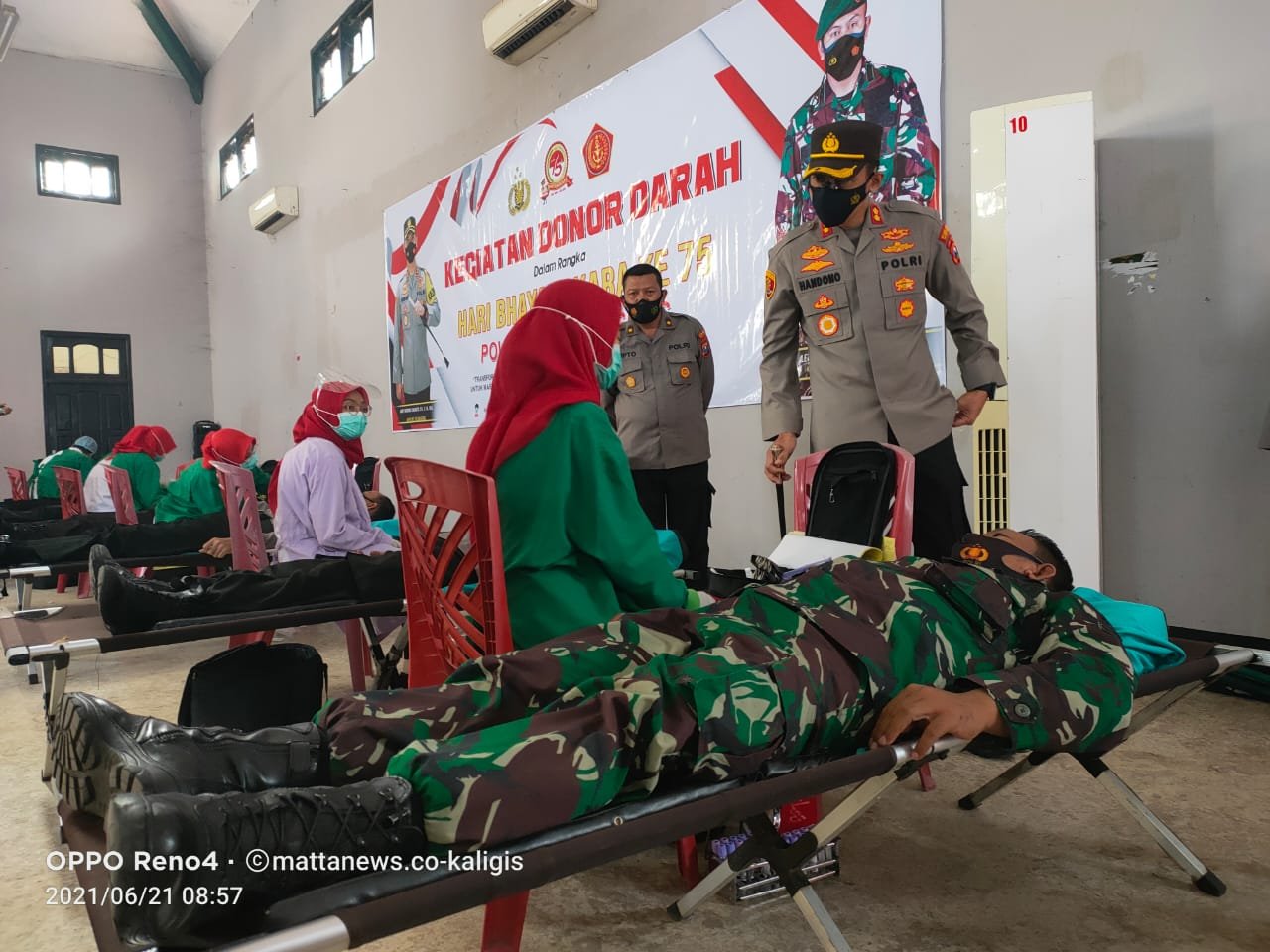 “Jadi begini, giat donor darah ini serangkaian dalam peringatan Hari Ulang Tahun (HUT) Bhayangkara ke-75 bertempat di gedung serbaguna belakang Rumah Sakit Bhayangkara,” kata Kapolres Tulungagung AKBP Handono Subiakto melalui Kasubbag Humas Polres Tulungagung Iptu Tri Sakti Syaiful Hidayat kepada mattanews.co usai kegiatan.